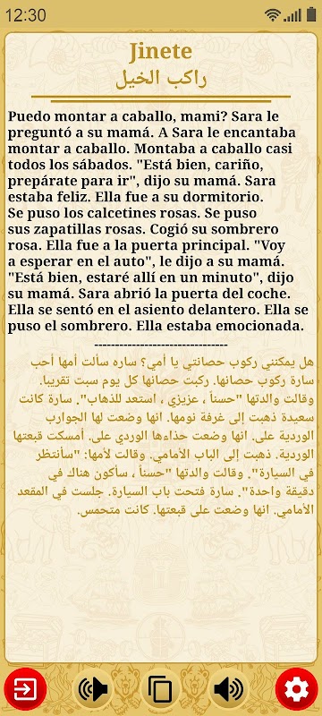 يبدأ التطبيق بتعليم حروف اللغة الإسبانية وكيفية نطقها, ومن ثم تعليم المفردات اللغوية والقواعد وتركيب الجمل وننتهي بالموضوعات والقصص والمحادثات. إضافة إلى القرآن الكريم كاملاً باللغة الإسبانية.