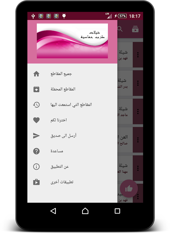 تطبيق شيلات طرب حماسية يضم مجموعة من شيلات طرب جديدة و مسرعة لأشهر المنشدين أمثال : فهد بن فصلا،ماجد الرسلاني،صالح اليامي ...و آخرون كما يعمل التطبيق على الخلفية و بجودة عالية Mp3.