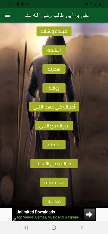تطبيق علي بن ابي طالب يعمل بدون نت يحتوي على حكم الامام علي واقواله وحياته وموت