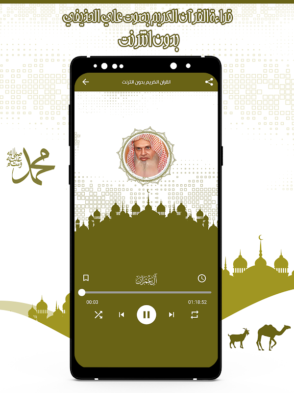 Dan jika anda gemar mendengarkan Al-Qur'an yang mulia dengan suara Syeikh Ali Al-Hudhaifi ... dan rasi bintang syeikh lain, atau jika anda ingin mengetahui ketentuan intonasi atau berkenalan dengan audio undang-undang terkuat kertas, jangan teragak-agak untuk melihat sisa aplikasi kami di kedai yang tersedia untuk pengguna secara percuma dan mudah.