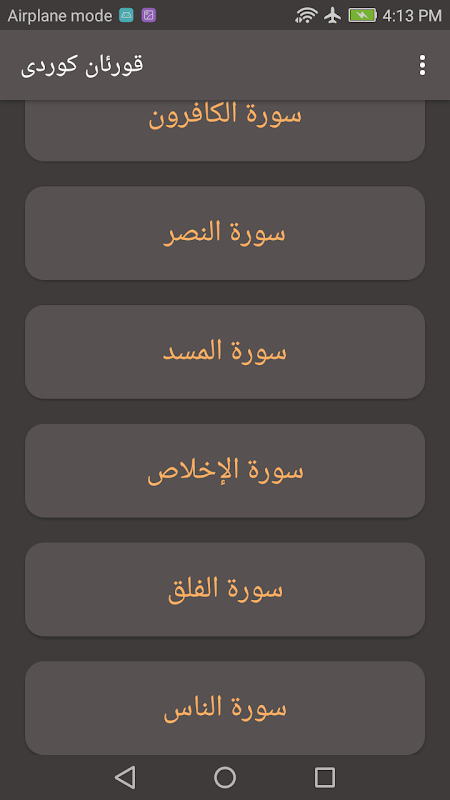 قورئانی پیرۆز گوێ بگره به تەرجەمە و وەرگێرانی زمانی کوردی ، سەرجەم سورەتەکانی قورئانی پیرۆز لەم ئەپەدا ئاماده کراوه