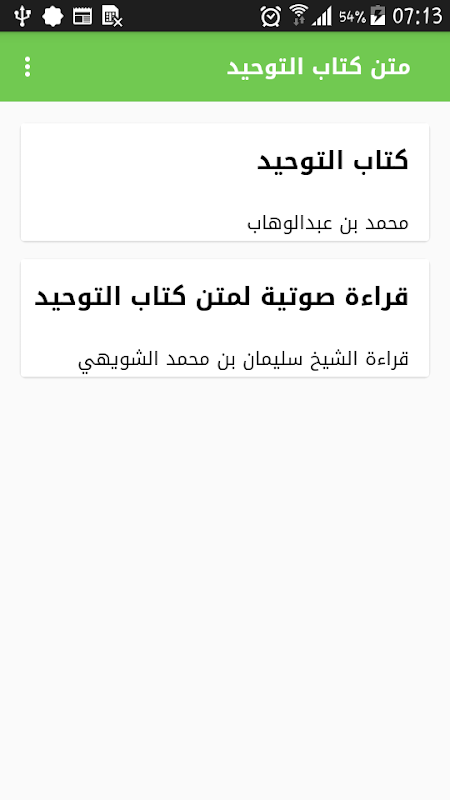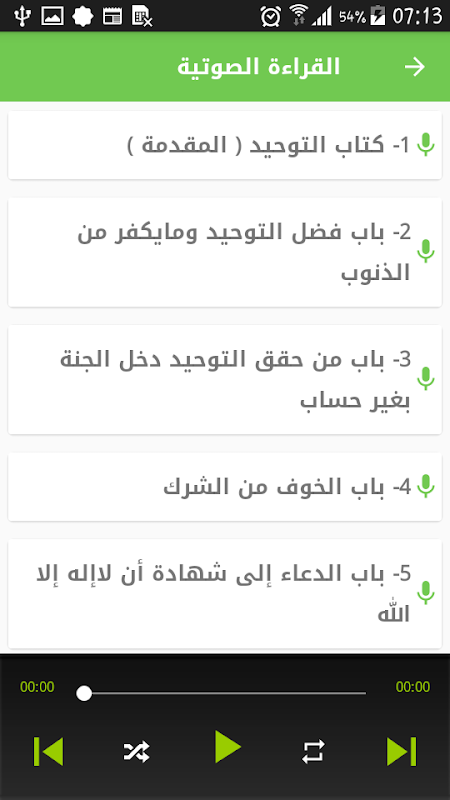 تطبيق متن كتاب التوحيد لشيخ الاسلام محمد بن عبد الوهاب رحمه الله يحتوي على الكتاب اضافة الى القراءة الصوتية للكتاب.