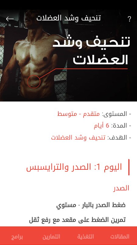 عدة برامج مختلفة التي تساعدك على خطة العمل الأسبوعي على حسب هدفك, حرق الدهون, التنشيف, تضخيم العضلات ,زيادة الوزن.