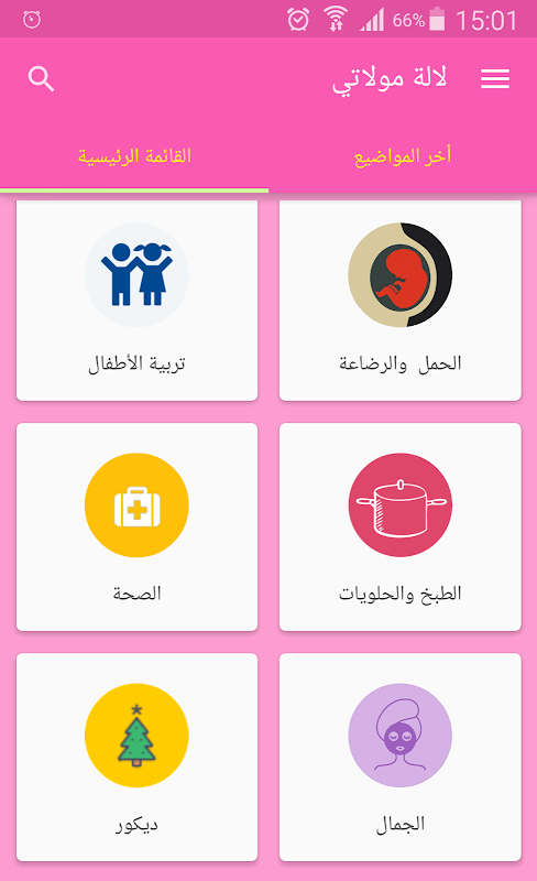 قسم الصحة: لم يغفل التطبيق كذلك على الجانب الصحي للمرأة فهو يعطيك وصفات ونصائح للوقاية والعلاج من الامراض