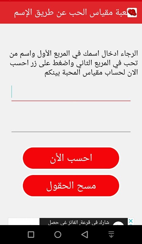 Maklumat APK لعبة مقياس الحب عن طريق الإسم