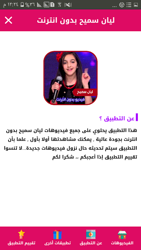 هذا التطبيق يحتوي على الفيديو التالي: