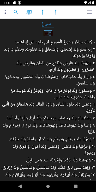 Arabic Bible Study Center termasuk Commentary, Search, TSK, Bible Reading.