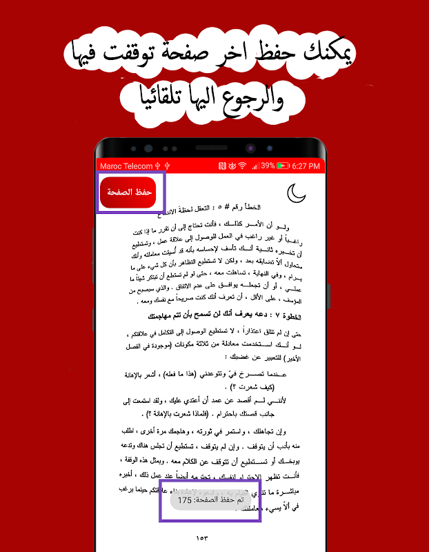 - إمكانية حفظ آخر صفحة والرجوع اليها تلقائيا