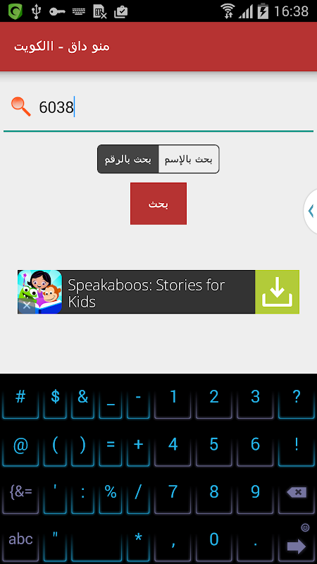 التطبيق ذو واجهة بسيطة وسهلة للغاية، فقط حدد طريقة البحث (عن طريق الرقم - عن طريق الإسم) وابدأ البحث فوراً، بسهولة ودون أي تعقيد،
