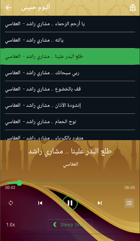 Aplikasi lagu-lagu Meshary Al-Afasy termasuk kumpulan pelbagai album
