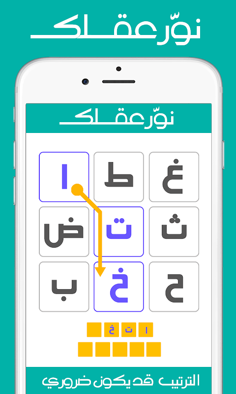 عندما تكتشف الاجابة المناسبة في لعبة نوّر عقلك ماعليك إلا أن تضغط على الحرف الأول وتسحب مع الضغط الى باقي الاحرف لتكمل الكلمة