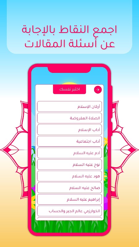 - Ajaran Islam adalah portal utama pertama dalam aplikasi, dan bertujuan untuk mewujudkan imej Islam yang betul untuk anak. Di mana bahagian ini memfokuskan kepada penerangan mengenai rukun Islam, iman dan kepercayaan, dan menjelaskan kelebihan akhlak dan urus niaga, di mana anak belajar banyak topik dalam peraturan perundangan dan pelbagai perkara agama yang saling berkaitan dalam urutan topik yang ketat dan bahagian.