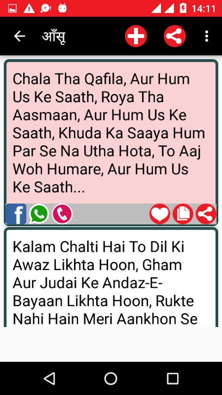 Share beautiful and heart-touching love filled Shayaris (Hindi Messages) with your loved ones on Social Networks, Chats, SMS and E-mail and make them fall in love with you once again with just one click. Enjoy the largest Love Shayari collection on your mobile.