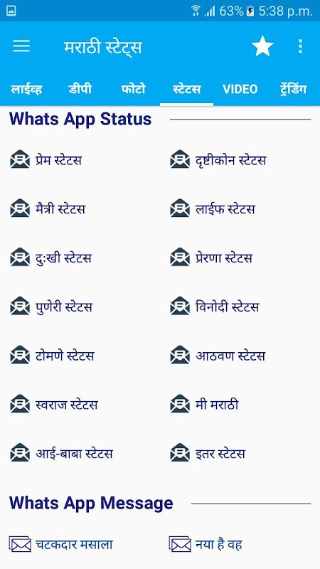 Marathi what's app videos status, video status for love, video status for attitude,video status for sad, imotional etc.