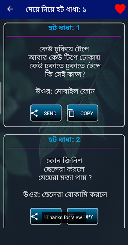অন্যরকম মজার স্ট্যাটাস আর প্রেমের SMS নিয়ে অ্যাপসটি সাজানো হয়েছে ।