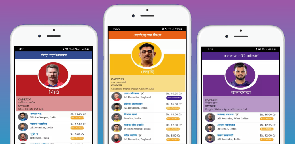 Harga Pemain: Dapatkan maklumat harga pemain IPL terkini, termasuk lelongan pemain dan senarai pasukan. Anda boleh melihat profil pemain, statistik dan harga lelongan sebelumnya.