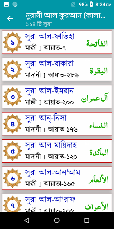 ১) পবিত্র আল কোরআনের ১১৪ টি সূরা