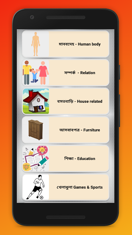 ইংরেজি শব্দের বাংলা উচ্চারন একটি ইংরেজি শিক্ষা অপ্ষা অপ্য এই অ্যাপে বিষয়ভিত্তিক ইংরেজি শব্দের বাংলা অর্থ দেয়া হয়েছে যাতে করে আপনি ভোকাবুলারি শেখার পাশাপাশি ইংরেজি উচ্চারণ শিখতে পারেন। স্পোকেন ইংলিশ এর জন্য এই অ্যাপটি খুবই কাজে লাগ।