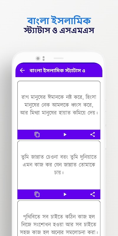 Aplikasi ini akan sangat berguna untuk mereka yang mencari Status Islam Bengali. Kami membawakan untuk anda pilihan baharu semua petikan Islamik. Melalui aplikasi ini, anda boleh membaca Bangla sms Bangla Islamic sms dan status Islam Status Islam dan siaran Islam Bangla serta melihat jadual solat Waktu Solat. Petikan-petikan terpilih daripada biografi Nabi (SAW), Al-Qur'an dan Al-Hadith serta buku-buku Islam diberikan. Yang akan menjadi inspirasi dalam hidup anda. Semoga bermanfaat untuk menghias diri secara Islamik.