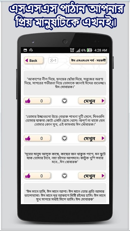 ঈদ এসএমএস প্রথমে সবাইকে জানাই পবিত্র শুভেচ্ছা ঈদ মোবারক। আয়োজন ঈদের এস এম এস নিয়ে আমাদের আয়োজন aplikasi eid sms. Eid ul fitter 2021 membawa anda semua jenis kebahagiaan. ঈদ এস এম এস নিয়ে আসুক আপনার জীবনে অনাবিল আনন্দ। ঈদ এসএমএস ২০২১ অ্যাপটি খুব সুন্দর ভাবে সাজানো হয়েছৈ। ঈদের এসএমএস এর সকল সুন্দর সুন্দর ভাষা সমূহ ব্যবহার করে আপনার বন্ধুদের মেসেজ করুন আজই।