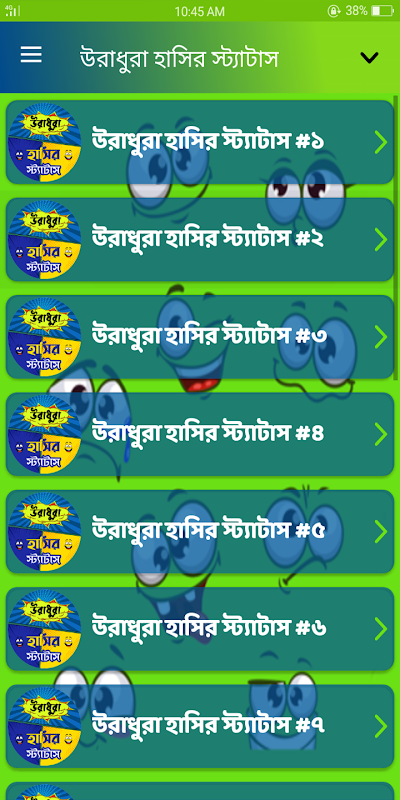App সালের সব নতুন নতুন ভাইরাল হাসির ও মজার স্ট্যাটাস পোষ্ট নিয়ে আমাদের এই নতুন “উরাধুরা হাসির স্ট্যাটাস” Aplikasi- টি। আর এই স্ট্যাটাস গুলি বাছাইকৃত এবং সুন্দর করে সাজানো রয়েছে।