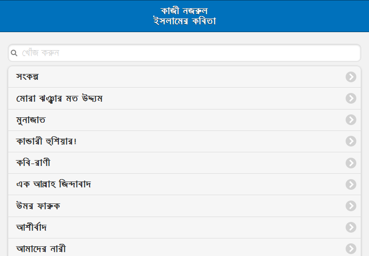 Jadi aplikasi ini telah diatur dengan koleksi puisi oleh Kazi Narjul Islam. Salah satu puisi Kazi Nazrul Islam yang paling popular.