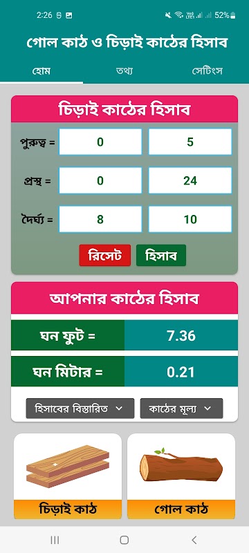 Maklumat APK গোল কাঠ ও চিড়াই কাঠের হিসাব