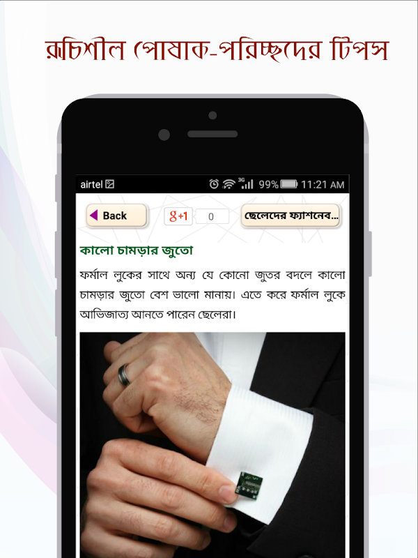 বর্তমান যুগে শুধুমাত্র মেয়েদের রূপচর্চা নয়, ছেলেরাও বেশ ফ্যাশন সচেতন হয়ে উঠেছেন। চুলের কাটিং কেমন হবে, কোন সিজনে চুলের স্টাইল কেমন হবে, তা নিয়ে তারাও সচেতন হচ্ছেন। শীতে ত্বকের যত্ন নিতে তারাও কম যান না। এটা যুগের দাবী। তবে রূপ সচেতন ছেলে বলতে এটা বুঝায় না যে তারা ব্র্যান্ডের পোশাক ছাড়া কাপড় এবং ব্র্যান্ডের এক্সেসরিজ বাদে কিছু ব্যবহার করতে চান না ও কেবল মেয়ে পটানোর কৌশল হিসেবেই ফর্সা হওয়ার উপায় খুঁজেন। একটু বুদ্ধি খাটিয়ে হাতের কাছে পাওয়া নানা জিনিস এবং কম খরচে ও মেকাপ ছাড়াই অনেক ফ্যাশনেবল হয়ে ওঠা যায়। তাই আপনার ফ্যাশনেবল হয়ে উঠতে সাহায্য করতে আমরা এনেছি এই অ্যাপ যাতে থাকছে-