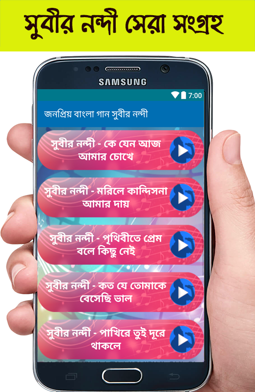 জনপ্রিয় শিল্পী সুবীর নন্দীর বাংলা গান গুলো দিয়ে সাজানো হয়েছে এই অ্যাপ্লিকেশনটি।