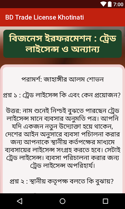 This app is based on how to make trade licence in bd so easily. There are so many question is answered related with trading business like export import business app. You will get all necessary information about trade licence. what you should do or not to do. Hope you will learn a lot from this application. THis is the best app for trade license.