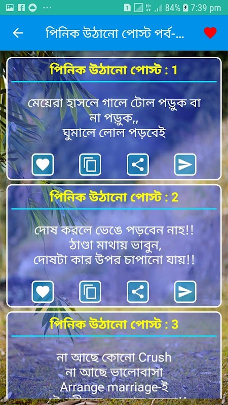 আপনে খুব সহজেই Apps টির এসএমএস ও স্ট্যাটাস এক Click এই কপি,শেয়ার, সেন্ট করতে পারবেন।
