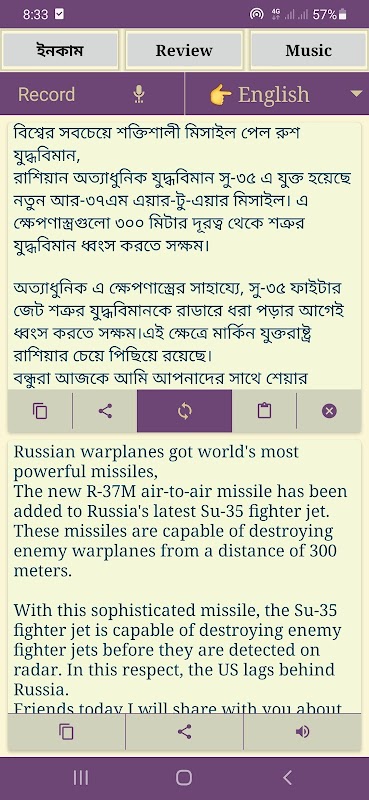 এই অ্যাপটির একটি বিশেষ সুবিধা হল আপনি মাইক্রোইেক্রোফফো নতে পারবেন। এছাড়াও আপনি ভয়েস থেকে টেক্সটে অনুবাদ করপে ।