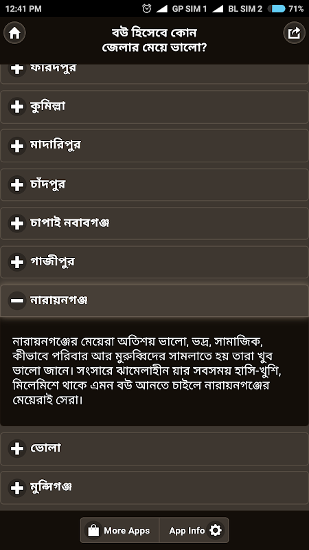 Maklumat APK বউ হিসেবে কোন জেলার মেয়ে ভালো?