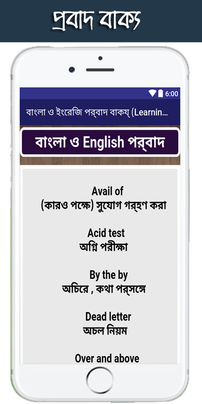 এ অ্যাপটিতে আপনি বাংলা থেকে ইংরেজি অনেক গুলো প্রবাদ প্রবচন পাবেন।