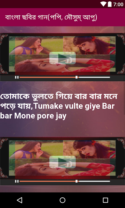 The app is the collection Best of পপি, মৌসুম্ ,আপু Bangla Movie Songs. You can enjoy the most popular Bangla Hot songs. There is also a new Bengali movie songs.All Are Awesome Here. So you can enjoy this apps.