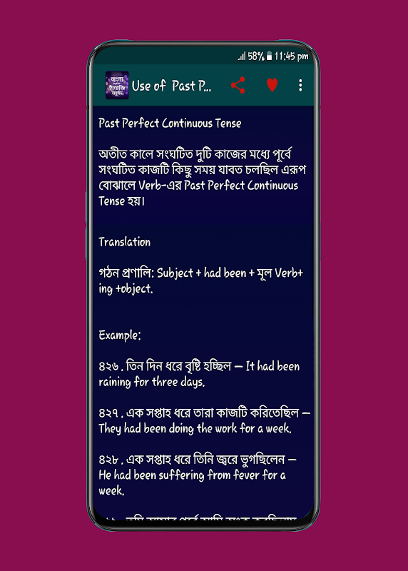 বর্তমান যুগে ইংরেজি একটি অতীব গুরুত্ববহ ভাষা।ইংরেজীতে কথা বলা বা speaking English ইংরেজি লেখা writing English জানা ও শেখার জন্য Grammar বা ব্যাকরণ ও vocabulary বা শব্দার্থ জানা অনেক জরুরি।আর এ কাজ গুলো সহজে করতে English Grammar বা ইংরেজি ব্যাকরণ এর নিয়ম গুলো আয়ত্ব করতে হবে।কিন্তু অনেকেরই পক্ষে এ কাজটি করতে অনেক দূরহ হয়।এ কাজটি সহজ করার জন্য আমরা Grammar এর উপর ভিত্তি করে বাংলা বাক্যকে ইংরেজিতে সহজে Translation বা অনুবাদ করার কিছু নিয়ম নিয়ে এসেছি।এতে করে যে কোন বাংলা বাক্য বা কথা কে সহজে ইংরেজিতে অনুবাদ করতে পারবেন।আর আমরা সেই সব বাক্য নিয়ে এসেছি যা আমরা দৈনন্দিন জীবনে বহুল ব্যবহৃত sentence বা বাক্য।English Grammar এর প্রধান Tense অনুযায়ী বাক্য গুলো আনা হয়েছে...