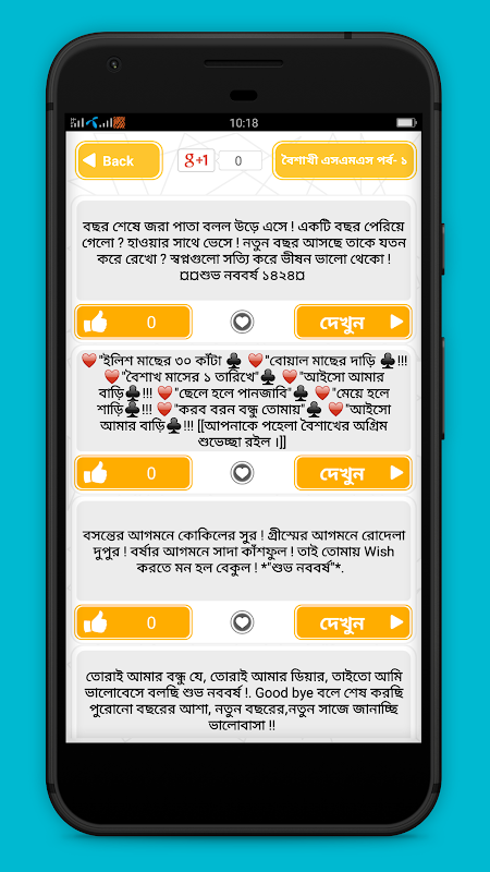 Bangla boishakhi sms is a bangla sms collection app . In this app you will found best sms bangla 2018. This app is easy to use and you can use it on offline also. Bangla new year that means pohela boishakh 1425 is cooming soon. So get ready and download this bangla sms apps. You can use this app as a love sms bangla also . You can use all the text as a bangla facebook status also .Happy Pohela boishakh 1424.