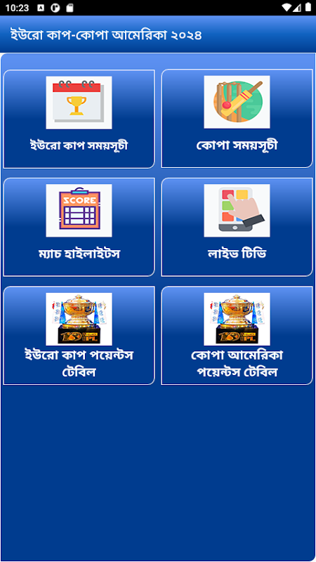 Apl ini mempunyai jadual permainan, masa dalam bahasa Bengali. Piala Euro 2024 & Copa america 2024