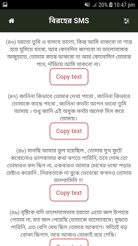 বুক ভরা বিরহের SMS | Bangla Biroher/koster Sms 1.1.0