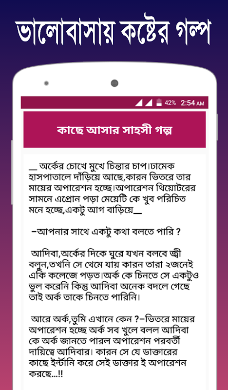 ভালোবাসার সব কষ্টের কাহিনী নিয়ে সাজিয়েছি আমাদের এই অ্যাপ যা সুধু কষ্টে ভরা জীবনের গল্প। ভালবেসে হয়ত আপনার জীবনও শেষ হয়ে গেছে আর এই অ্যাপ এ সেই সব মনপুরা মানুষের জীবনের গল্প দিয়ে এ সাজানো হয়েছে।