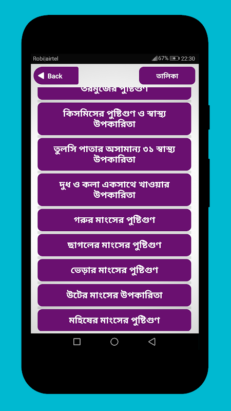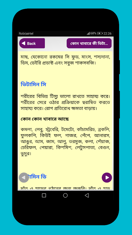 Panduan Vitamin dan Kalori di Bangladesh adalah aplikasi berkaitan kesihatan. Ini adalah salah satu penyelesaian untuk aplikasi panduan vitamin di bengali dan Kalkulator Makanan Calorie.
