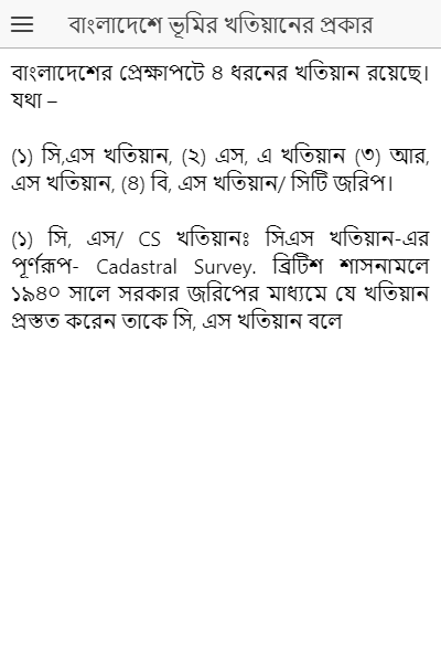Terdapat 4 jenis lejar dalam konteks Bangladesh. Yaitu: C, S Khatian, S, A Khatian