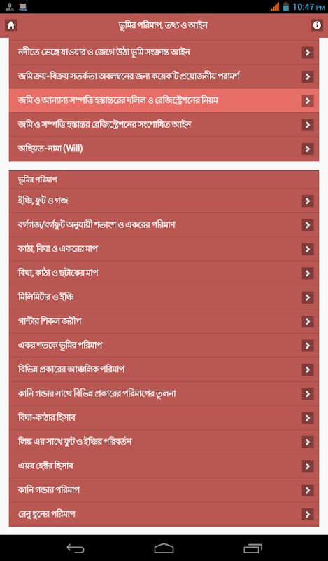 এপ টিতে আপনি ভূমির পরিমাপ ও ভূমি সম্পর্কিত বেশ কিছু তথ্য পাবেন।