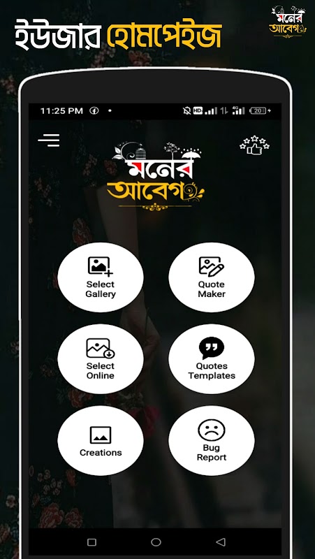 Aplikasi Abeg Emosi Minda mempunyai banyak templat kapsyen sms bangla status dengan banyak latar belakang dan imej.