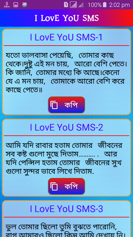 প্রত্যেকেরই একজন পছন্দের মানুষ থাকে কিন্তু কয় জনই বা পারে তার পছন্দের মানুষটিকে তার ভালোবাসার কথা জানাতে। মনে রাখবেন যে কোনো কেউই আপনার প্রেমে পরবে কিন্তু সেজন্য আপনাকে বিভিন্ন টেকনিকে আপনার পছন্দের মানুষটির মন জয় করে নিতে হবে। তাই আপনারা আমাদের অ্যাপটির মাধ্যমে খুব সহজেই পছন্দের মানুষের মন জয় করার টেকনিক শিখতে পারবেন। এছাড়াও আমাদের অ্যাপটির মাধ্যমে আপনারা আপনার পছন্দের মানুষের মন জয় করার সকল ধরনের রোমান্টিক এসএমএস পাবেন।