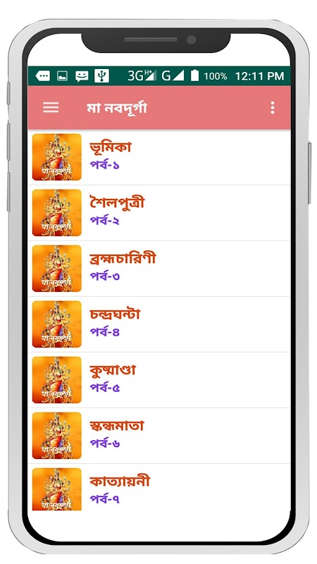 অ্যাপটিতে সনাতন ধর্মীয় মা নবদূর্গার নয়টি রুপ সম্পর্কে বলা হয়েছে ।