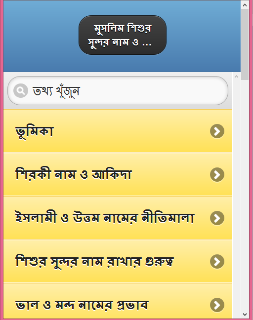 অ্যাপ্লিকেশনটি আপনি সহজে ব্যবহার করতে পারবেন এবং কোন পছন্দের নাম প্রয়োজনে খুঁজতে পারবেন। অ্যাপটি সকলের ব্যবহার উপযোগী করে তৈরি করা হয়েছে।