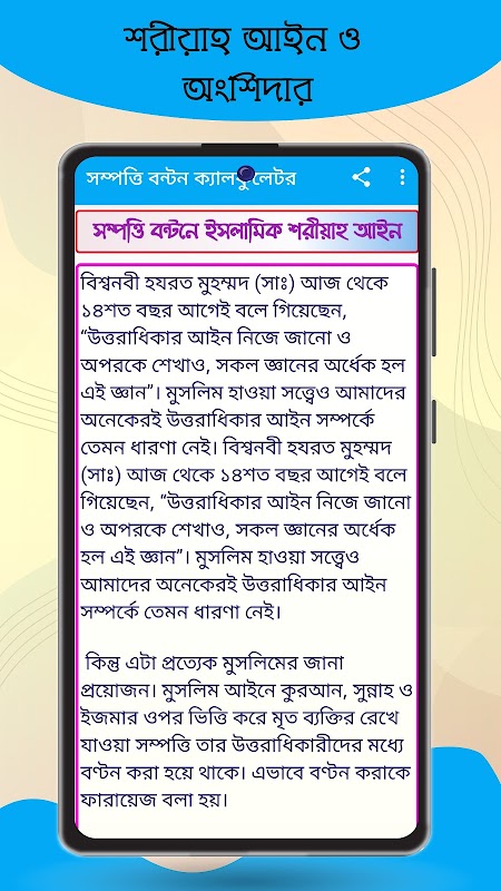 Kalkulator pembahagian harta atau apl kalkulator Warisan ialah apl yang hebat untuk melihat pendaftaran tanah dalam talian dengan semua undang-undang yang berkaitan dengan warisan. Aplikasi kalkulator pengagihan harta ini merangkumi undang-undang pemindahan harta dan undang-undang Syariah Islam termasuk uttoradhikar (pengiraan harta pusaka Muslim). Kini anda boleh melihat jumlah bahagian anda dalam harta peninggalan ibu bapa anda termasuk bapa saudara/mertua daripada kalkulator warisan atau apl warisan ini.