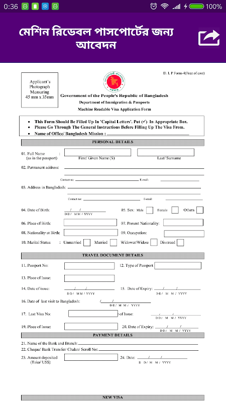 Kerajaan Bangladesh semua bentuk dalam app.Download tunggal, isi-up, cetak, saham.