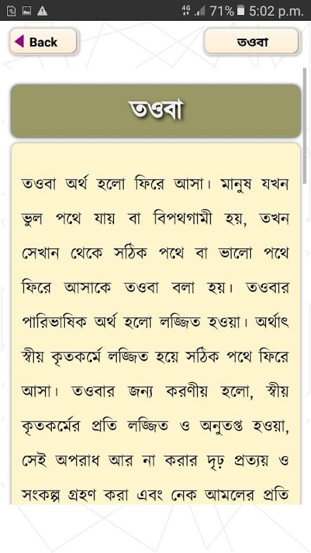 Saidul istegfar bangla is an islamic app. Sayyidul istighfar dua bangla is very important for Muslim peoples. Tawba is the Islamic concept of repenting to allah due to performing any sins and misdeeds. if muslims pray salatul hajat bangla for Allah's due repentance, Muslims can consciously receive Allah's mercy and protection and help. Sayedul estegfar bangla or estegfar dua literally means 'retreat'/ 'return' . Sayidool istigfer uccaron, Sayidool istigfer arabic, Sayidool istigfer ortho Sayidool istigfer bangla,. So hope this tauba dua bangla or tauba astaghfar will help you a lot to learn sayyidul istighfar bangla.